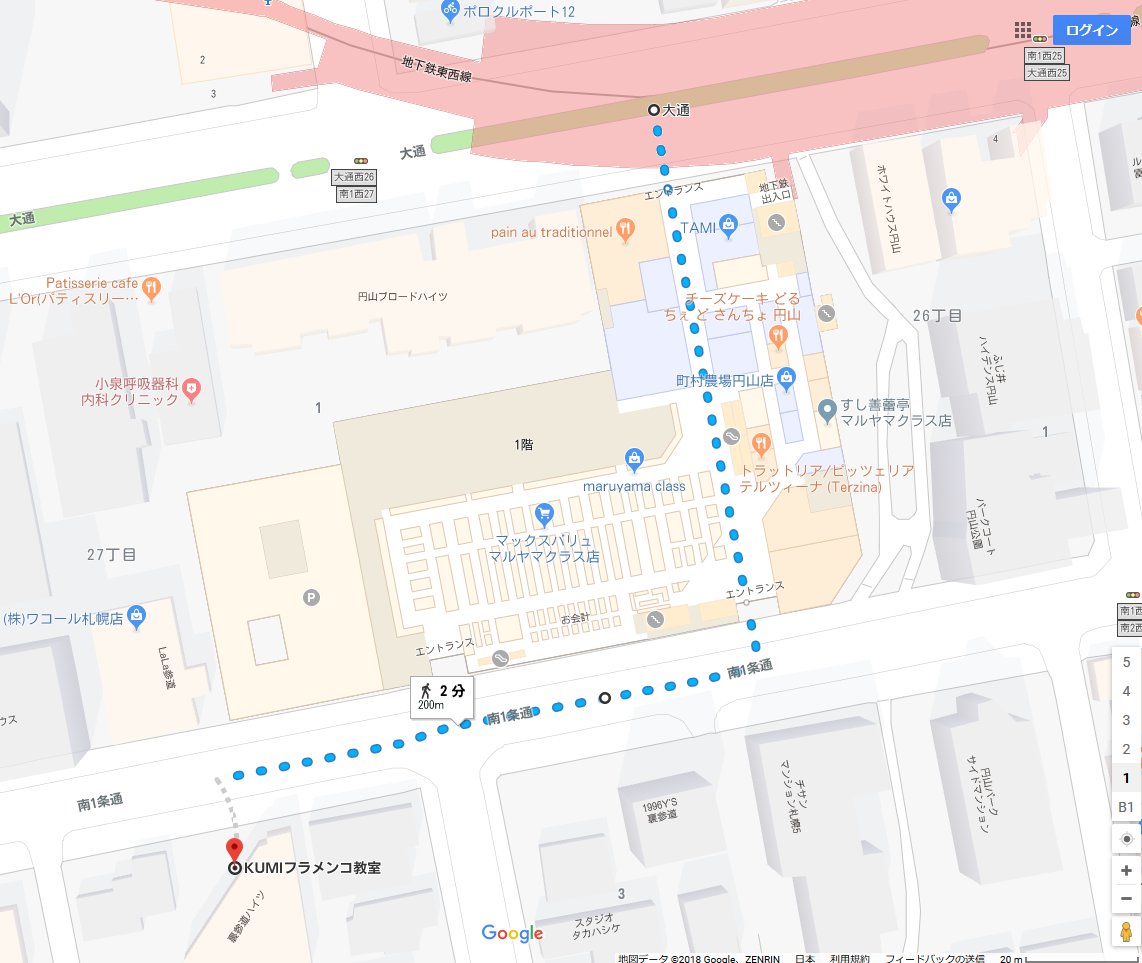 東西線円山公園駅下車。駅直結マルヤマクラス1Fスターバックス横の出口を出て右手へ進み、ワコールビル向かいのレンガ色のマンション地下1階にあります。